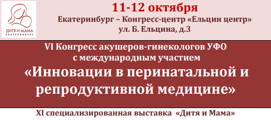 11-12 октября 2019, Екатеринбург, XI Конгресс акушеров-гинекологов УФО с международным участием «Инновации в перинатальной репродуктивной медицине», XI специализированная выставка «Дитя и Мама»