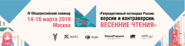 14-16 марта 2019, Москва, «Репродуктивный потенциал России: версии и конраверсии. ВЕСЕННИЕ ЧТЕНИЯ»